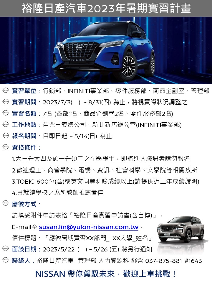 【2023裕隆日產暑期實習熱烈招募中~歡迎上車挑戰!】