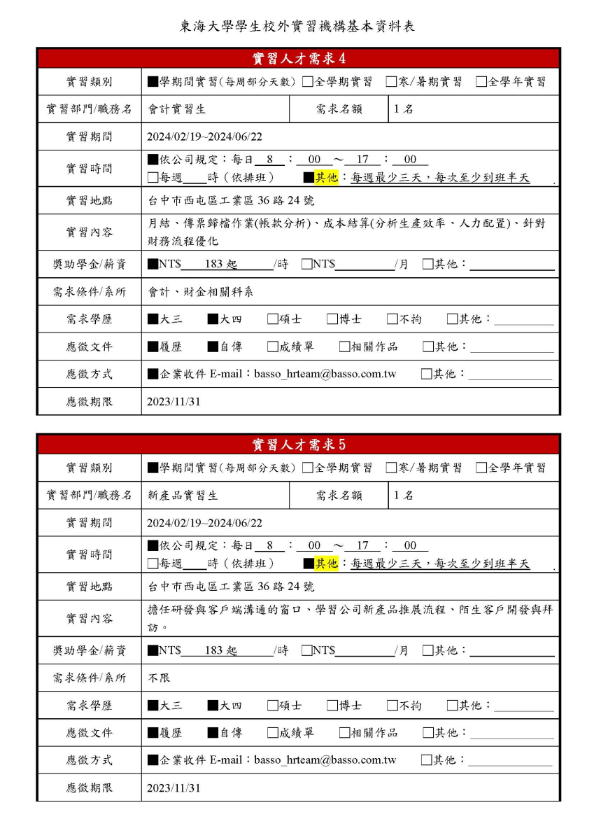 *本案之實習課程事宜,請於參加甄選前與系所確認,是否符合實習課程與學分認列標準,若未符合系上標準,則無法認列實習學分,無法認列亦影響實習保險/合約保障,請同學務必留意。