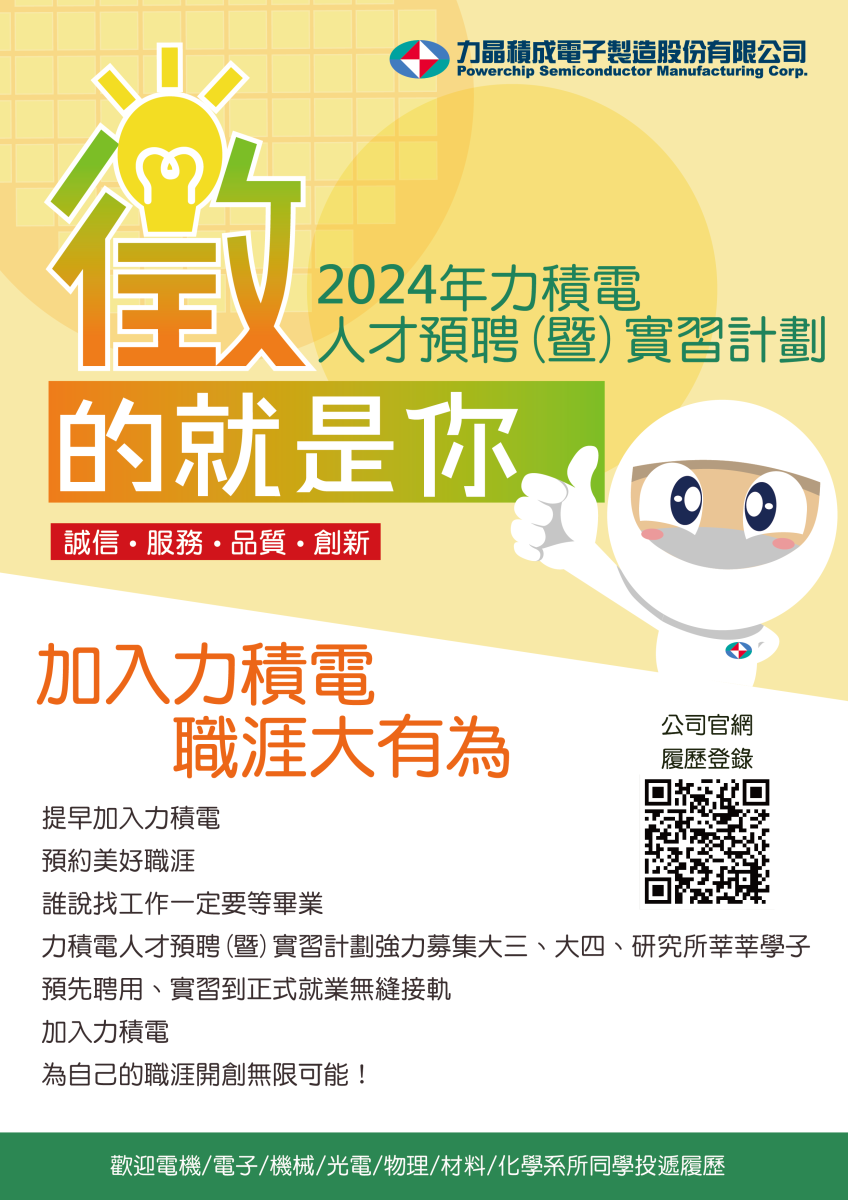 在人才激烈競爭的產業中,力積電為儲備、培養專業人才,將募集在校生參與計畫,