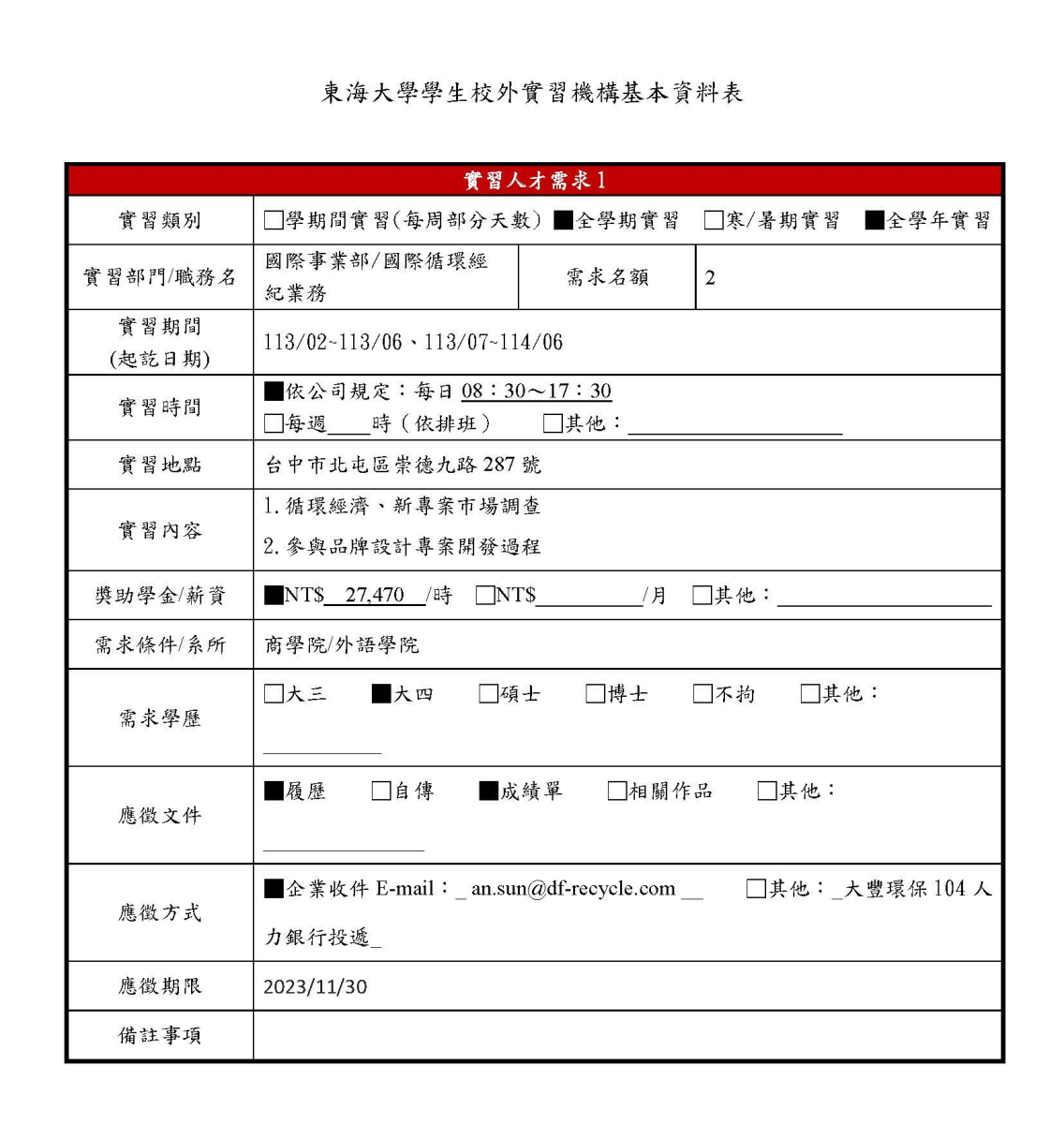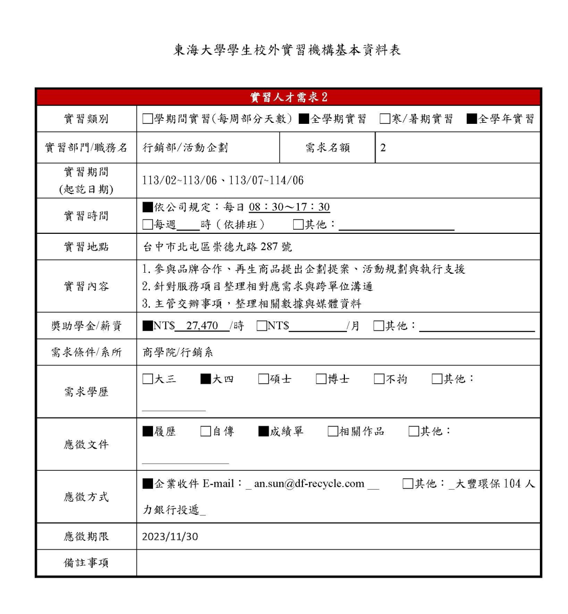 *本案之實習課程事宜,請於參加甄選前與系所確認,是否符合實習課程與學分認列標準,若未符合系上標準,則無法認列實習學分,無法認列亦影響實習保險/合約保障,敬請留意!