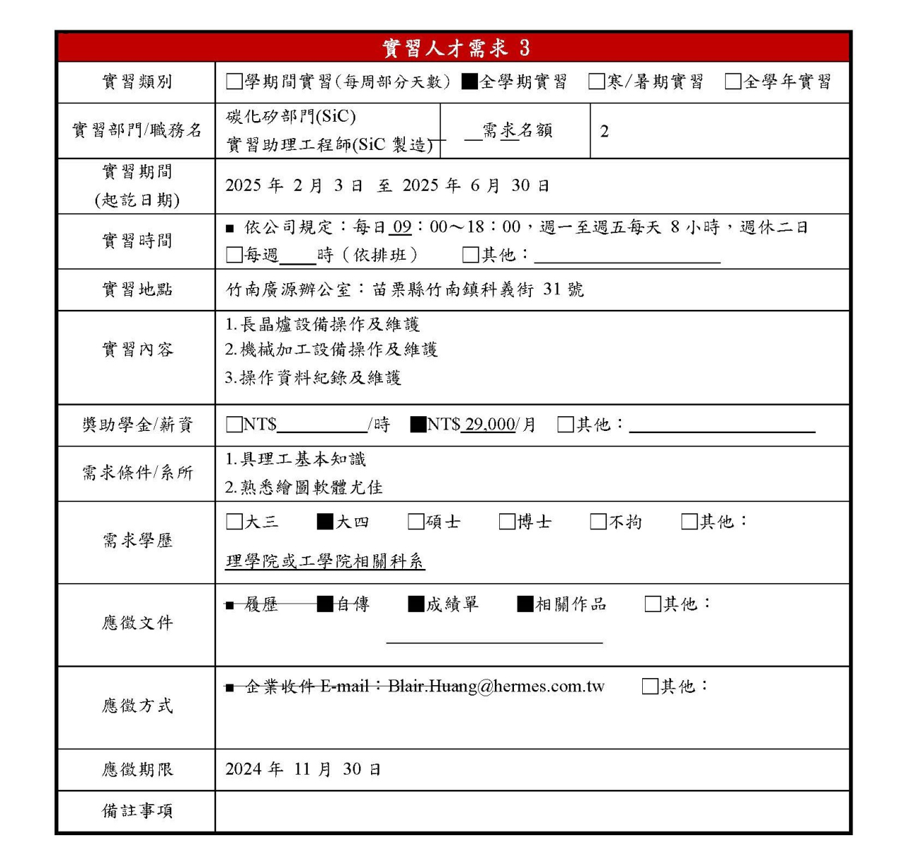 3.碳化矽部門(SiC)-實習助理工程師(SiC 製造)