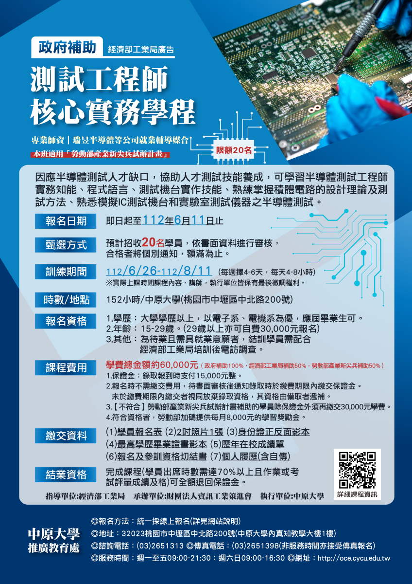 七、相關事宜請洽中原大學推廣教育處,電話:03-2651313。
