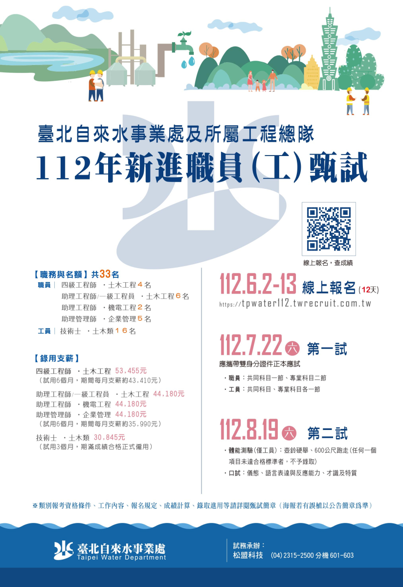 臺北自來水事業處及所屬工程總隊112年新進職員(工)甄試
