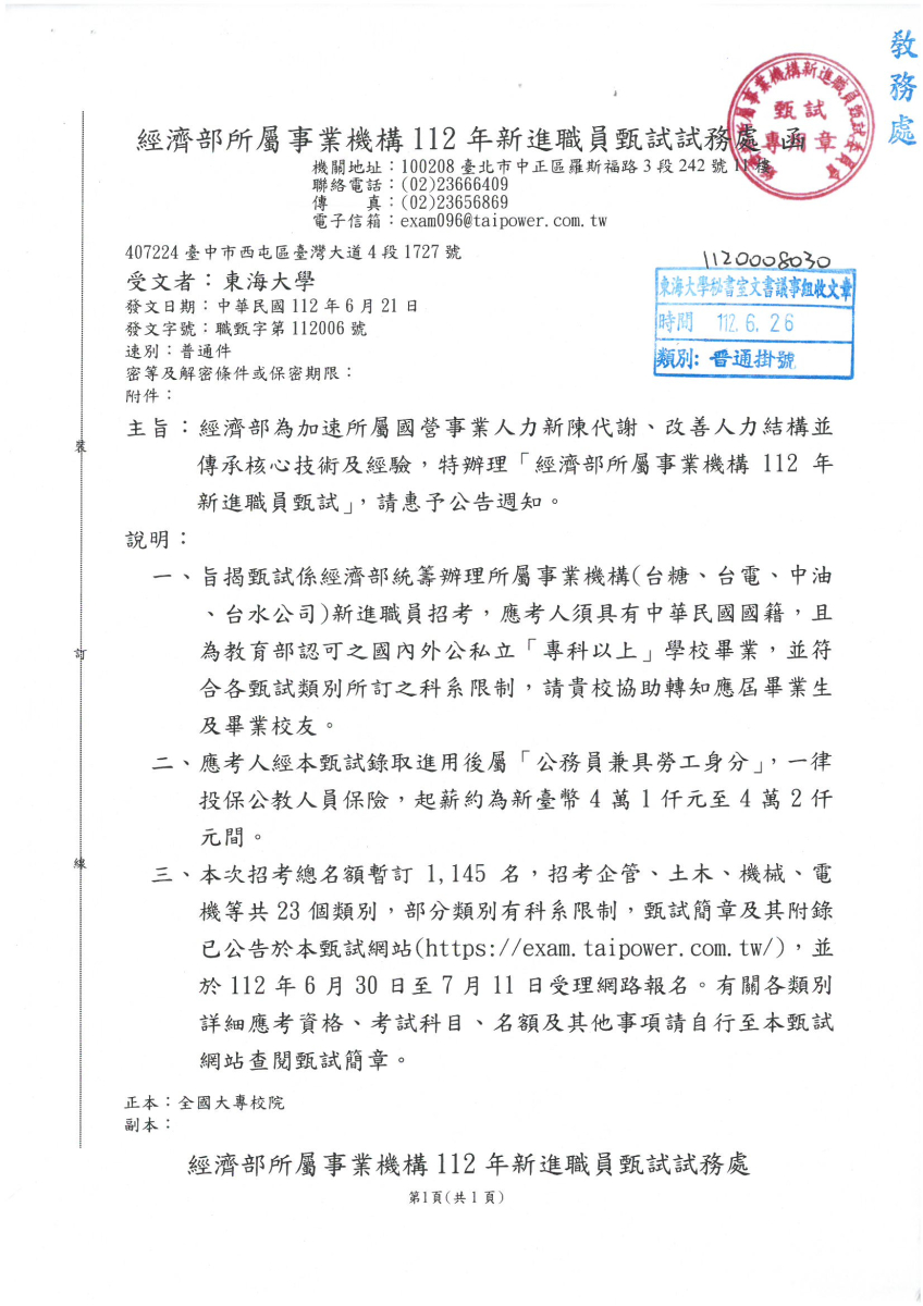 ☆詳細資訊請逕至網站 https://exam.taipower.com.tw/Exams/